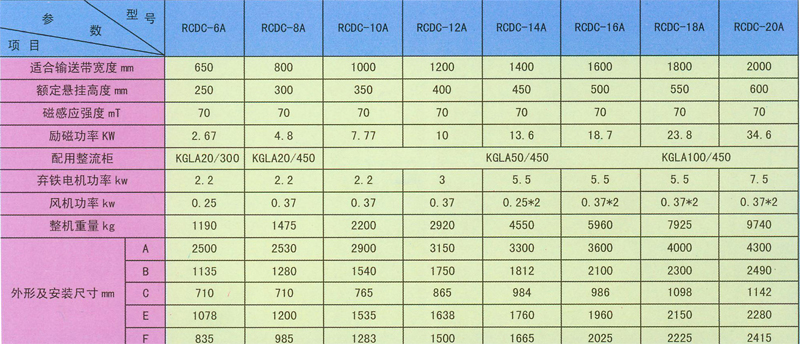 該除鐵器采用控制溫升的專有技術(shù),即在線圈總砸數(shù)N(反應(yīng)磁場強(qiáng)度的主要參數(shù))不變的情況下,采用薄餅線圈數(shù)量的方法以增加風(fēng)道數(shù)量,增大線圈與空氣的接觸面積,因而溫升低,熱態(tài)性能高,本除鐵器連續(xù)工作制100%。